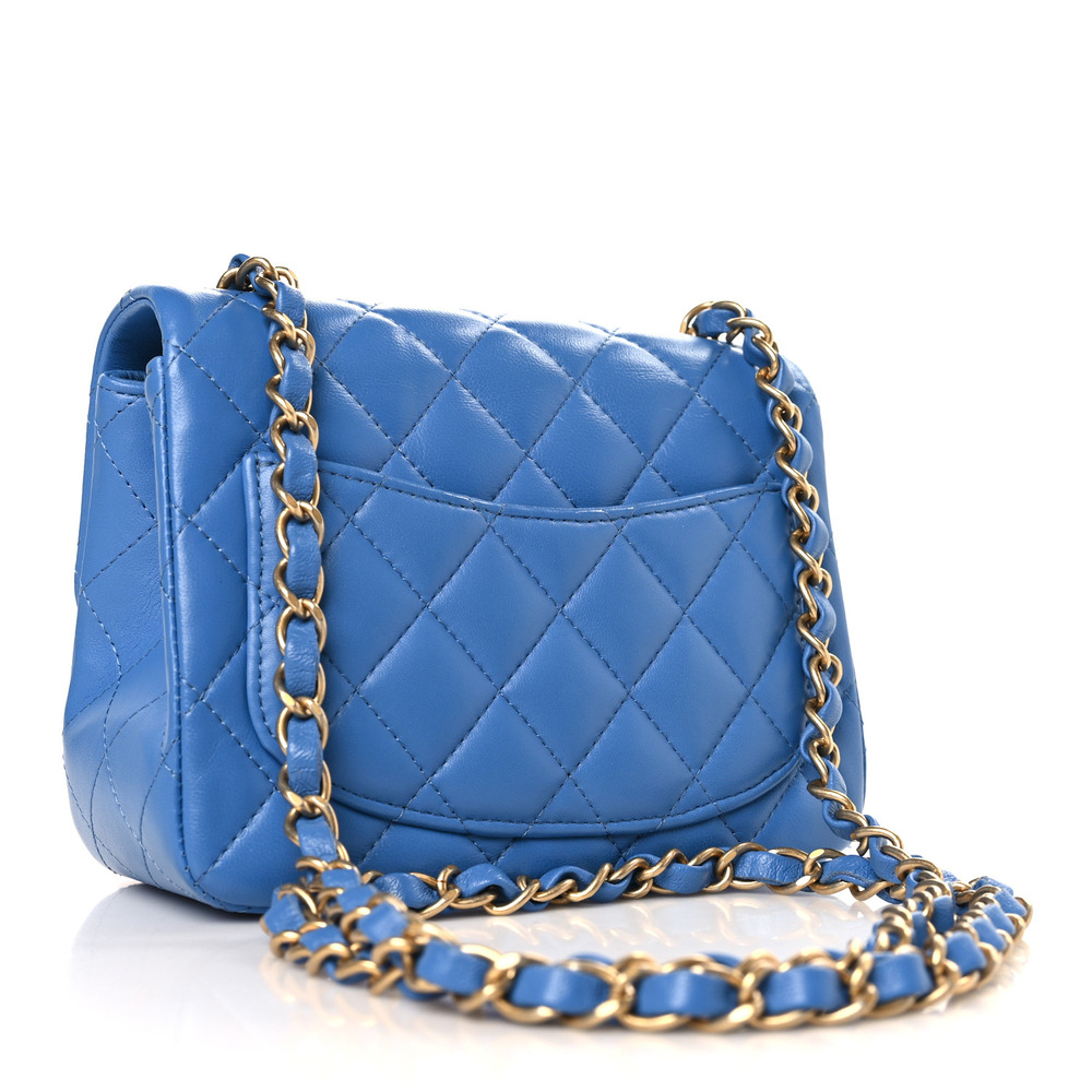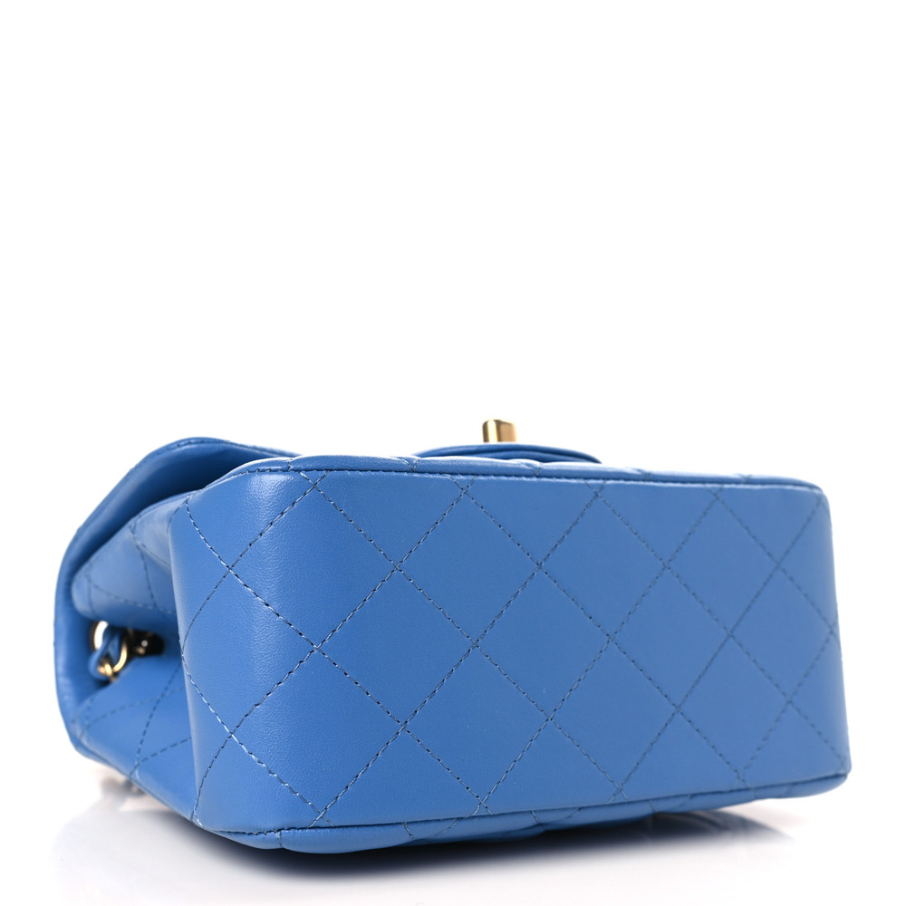 CHANEL Lambskin Quilted CC Pearl Crush Mini Rectangular Flap Blue
